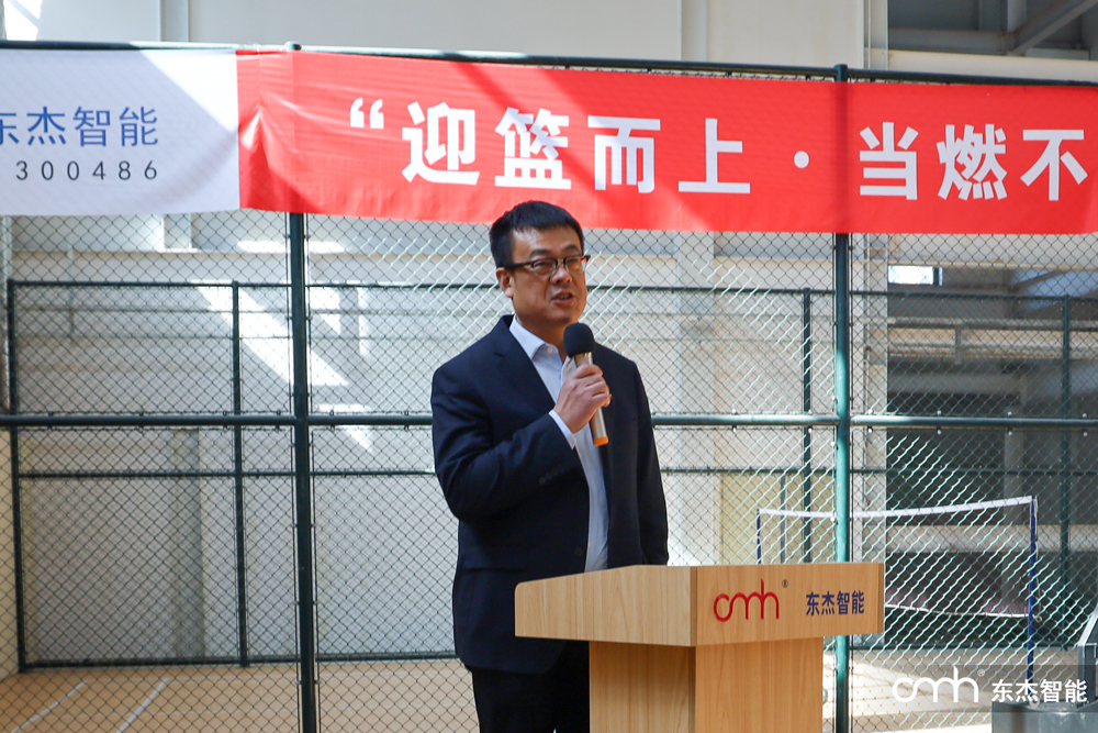 王總在隨后的講話中滿懷激情地講到:“迎籃而上·當燃不讓”這八個字,生動詮釋了我們東杰人敢打敢拼、追求卓越的精神?;@球場上的每一次進攻都需要五個人齊心協力,企業發展同樣需要各部門緊密配合、攜手并進。希望參賽隊員們在比賽中展現出的激情與斗志,能夠轉化為工作中的創新動力和協作意識。"王總特別強調,"東杰智能始終致力于為員工打造實現價值的舞臺,未來我們將繼續完善人才培養機制,通過豐富多彩的文體活動和職業發展通道,讓每一位員工都能在這里收獲成長、成就夢想。"