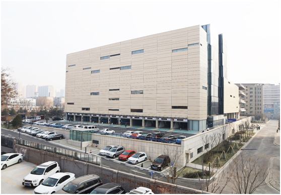 Xuefu smart parking building is located in the northwest corner of the intersection of WUcheng Road and Xuefu Street, the project construction area of 17908.41 square meters, a total height of 38.75 meters, divided into two north and south warehouse, 13 floors of the South Library parking floor, 11 floors of the North Library parking floor, a total of 1204 parking spaces, including 918 mechanical parking spaces, 118 outdoor parking spaces, 168 parking spaces on the ground floor of the commercial floor. The building is set up with 11 independent imports and exits, enabling independent continuous access to vehicles.