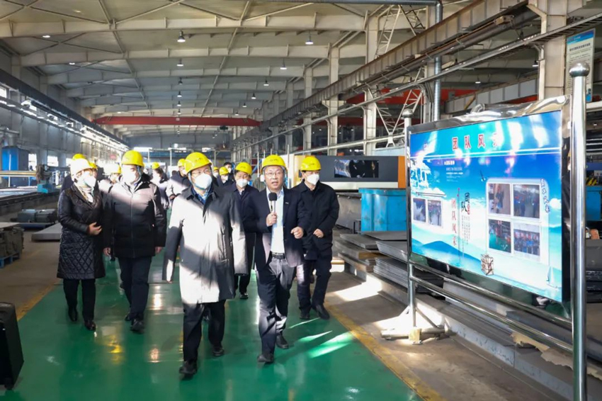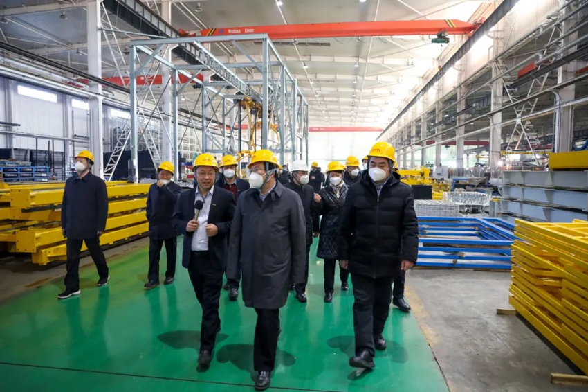 吳存榮帶隊參觀了東杰智能智能制造二期生產基地,仔細聽取了藺萬煥總經理的介紹,著重了解了東杰智能的公司業務發展情況、技術創新研發情況、經營情況及未來發展規劃等內容。